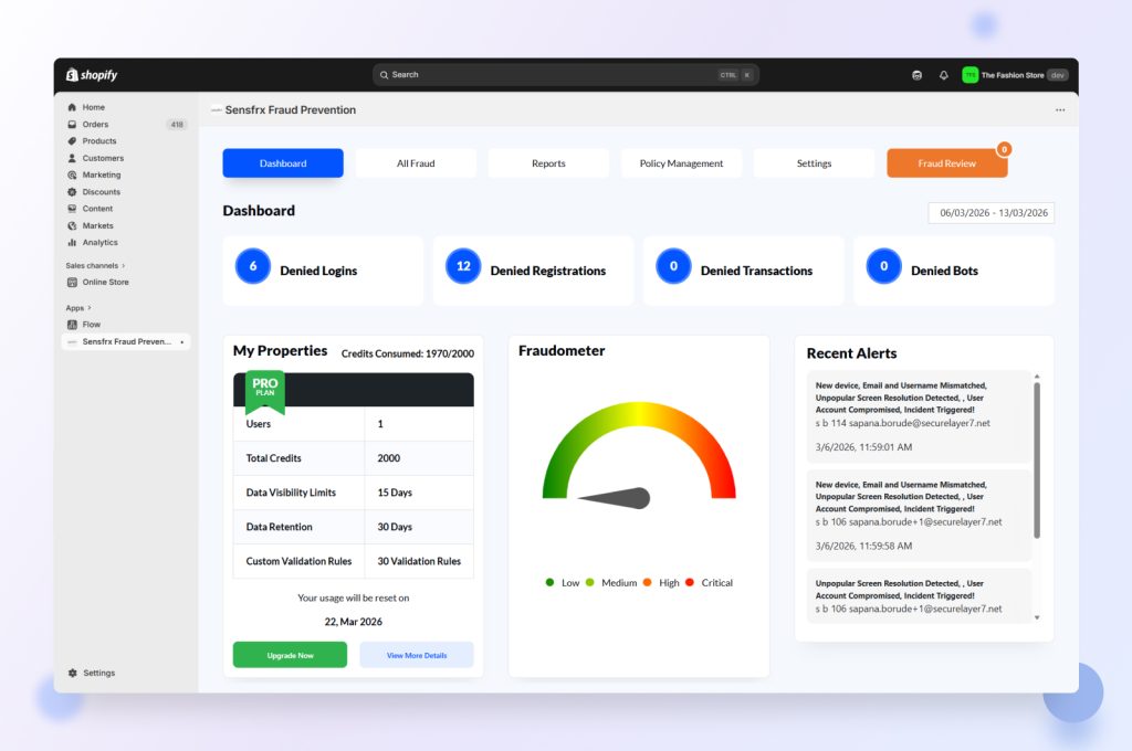 Stay ahead of fraud, keep your revenue safe, and grow with confidence – Sensfrx has your Shopify store covered.